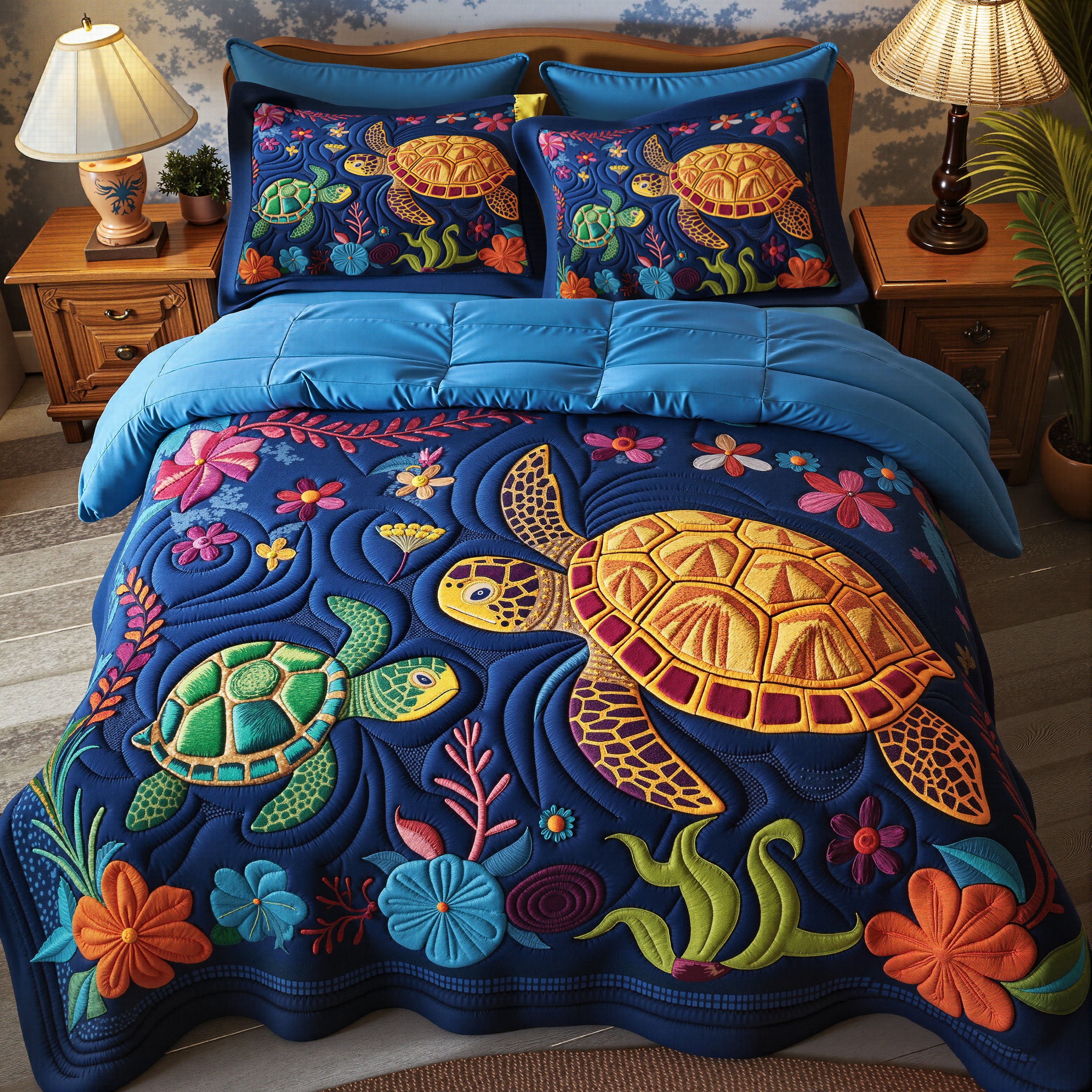 Colorful Sea Turtles 3-Piece Quilted Style Bedding
