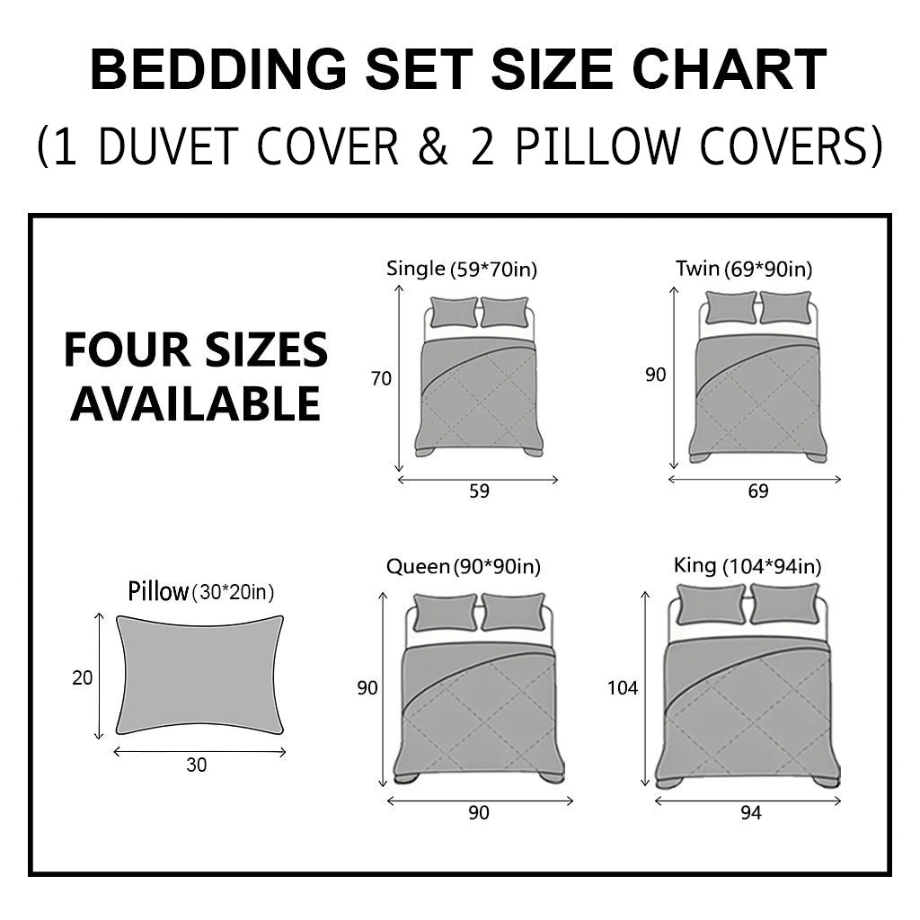 Includes: 3pc Bedding Set;One duvet cover and two pillowcases(Excludes comforter and pillow inserts.)
