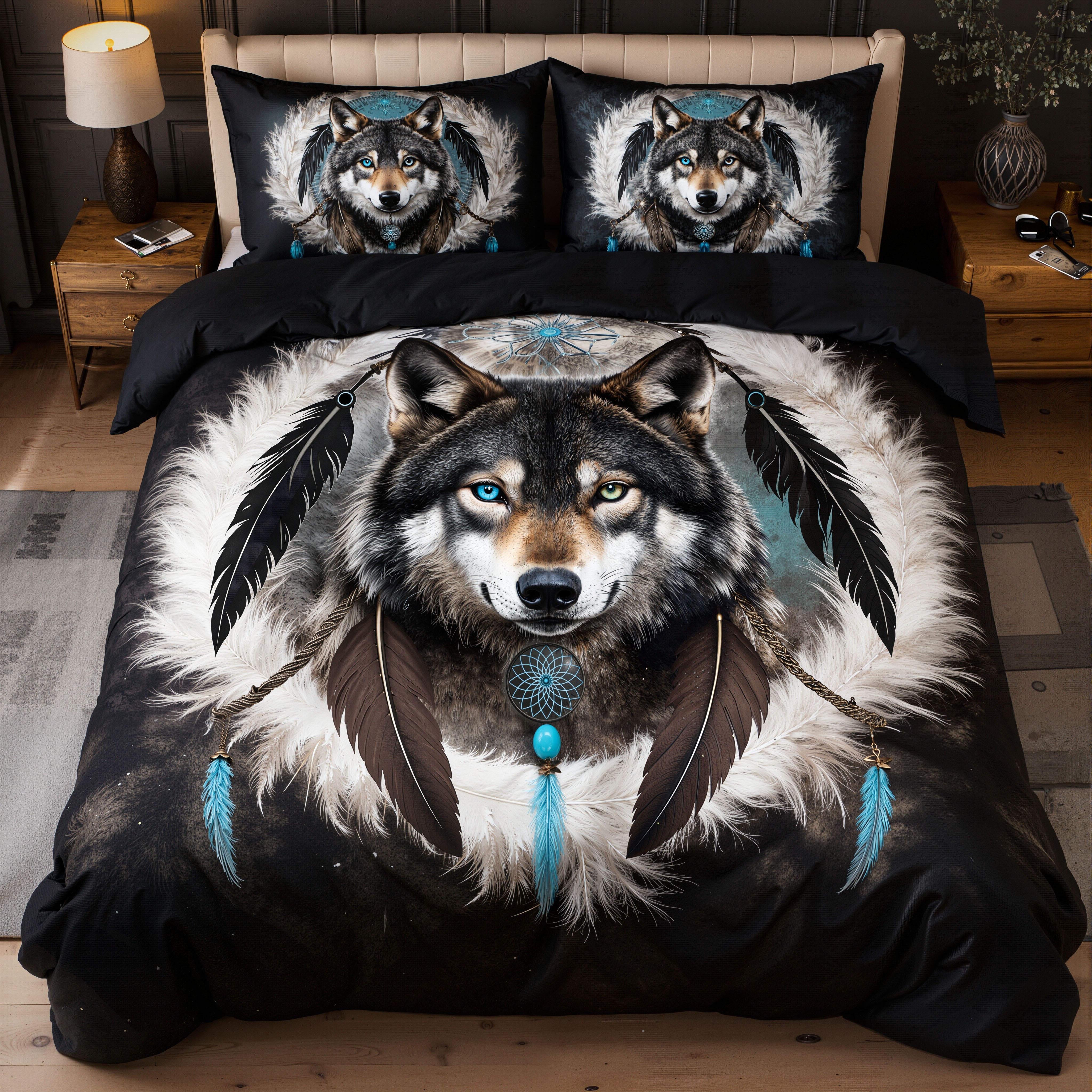 Dreamcatcher Wolf 3-Piece Quilt Style Duvet Cover Set