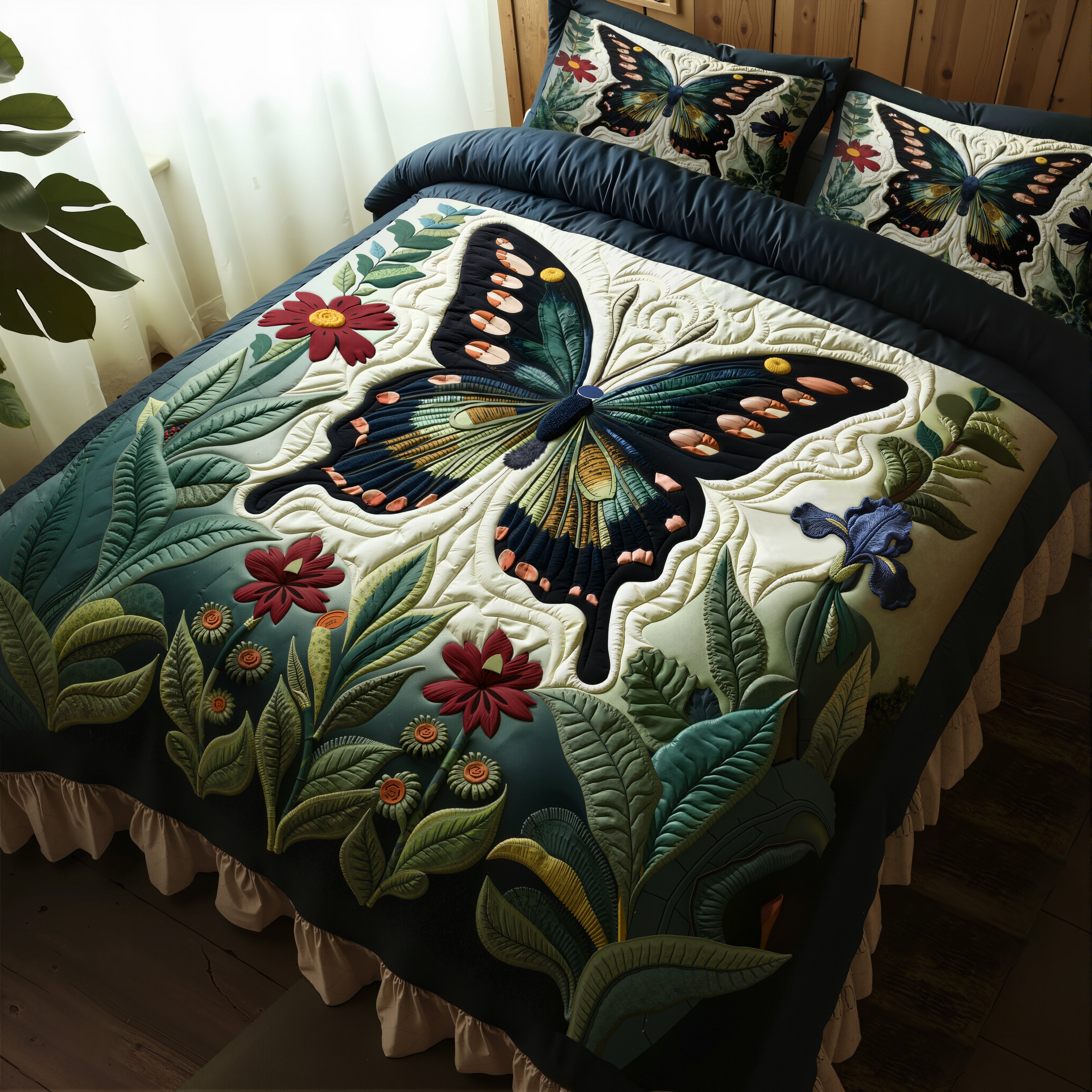 Vintage Butterfly Floral 3-Piece Quilt Style Duvet Cover Set